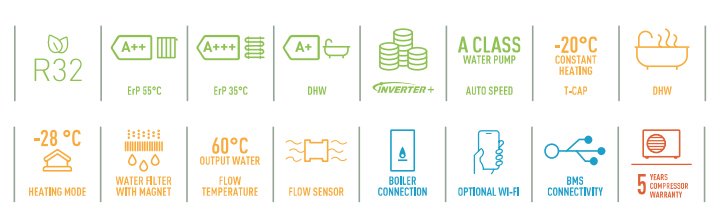 - Venkovní jednotky v antracitově šedé barvě, která oblékne celou řadu, byly kompletně přepracovány s inovativním designem, který si najde své místo ve všech prostorách.